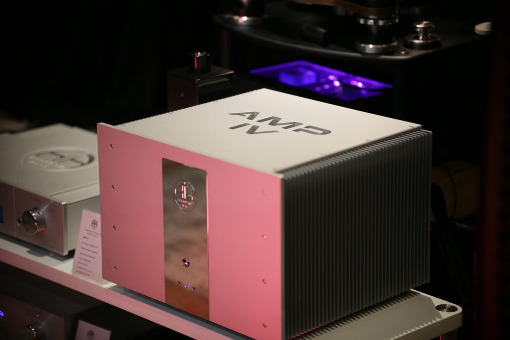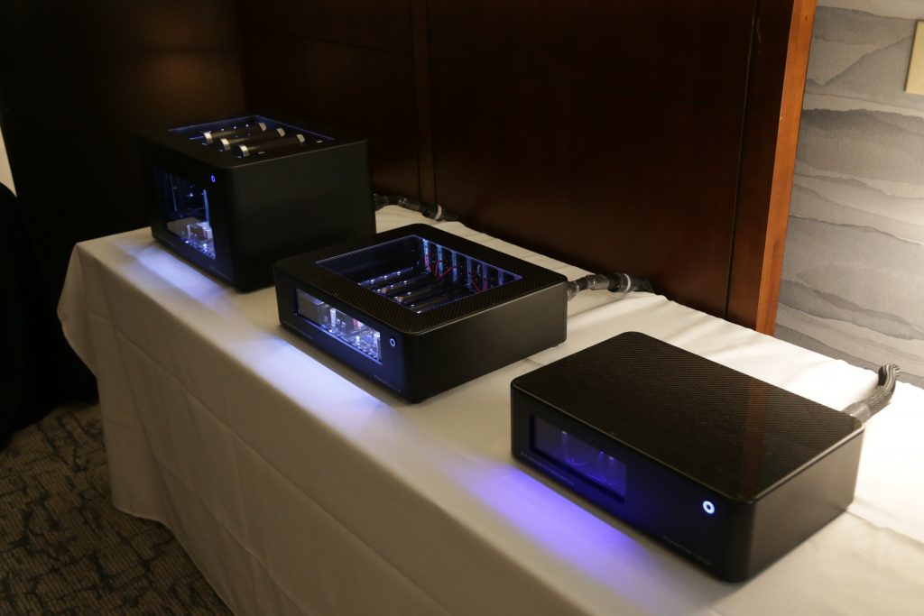This was a cool room for me, I have experience with Itai’s Billie amp, the first Gen, but not much experience with MC Audiotech speakers. I was able to really hear how the speakers perform and frankly loved the sound. The system was simple: an integrated amp, the Billie MkIII, and a pair of MC Audiotech TL-8 speakers. But the simplicity breathed life into music in a way that was sublime and smooth. I was such a fan, I brought home the speakers for a full review. The Billie amps are great, they offer great sound and features in a compact package. They are a hybrid design with a tube front end and solid state output, offering both smooth tube sound and plenty of power, up to 250w per channel. It uses a modular design that allows you to customize the amp to your needs and budget and allows you to upgrade later.