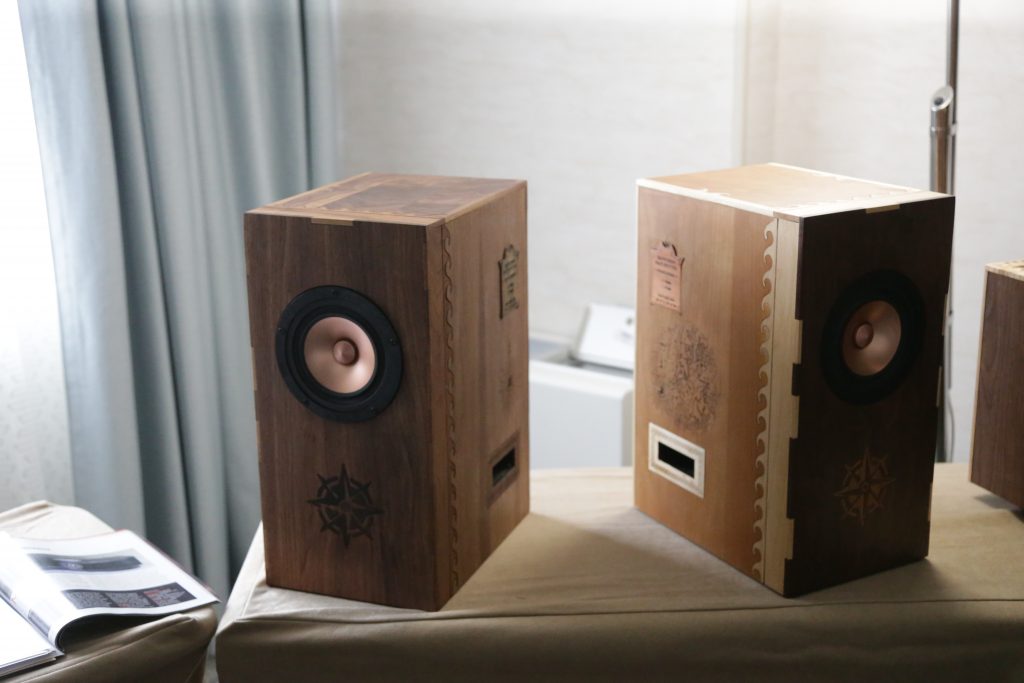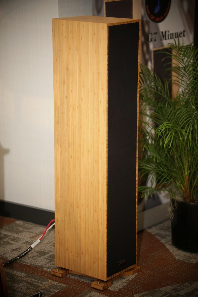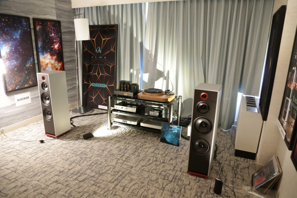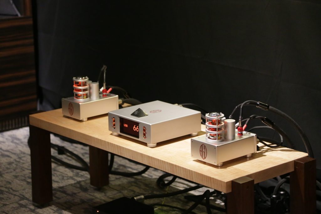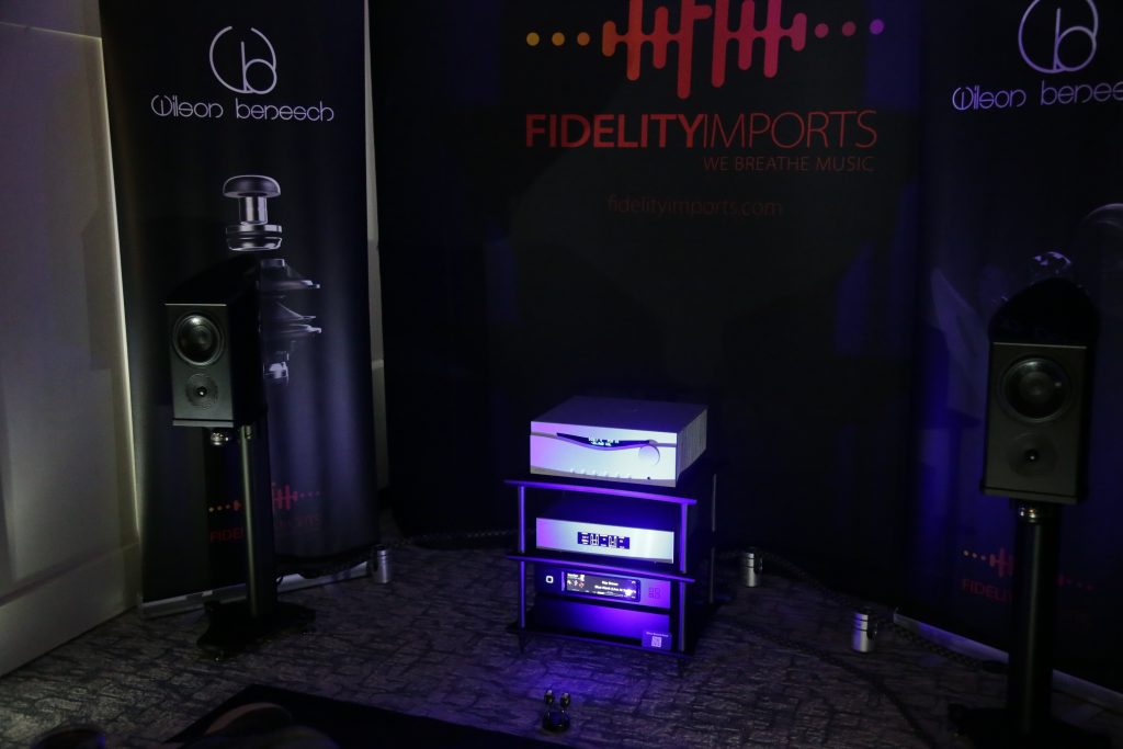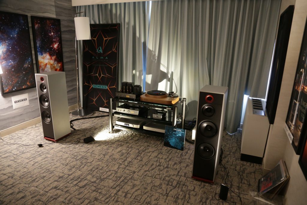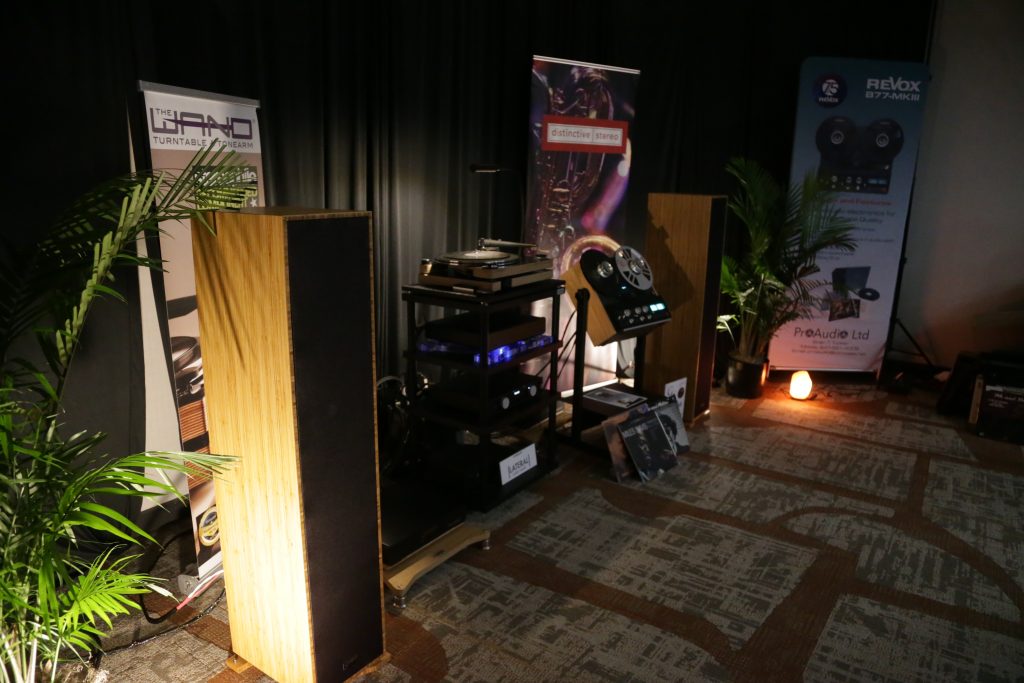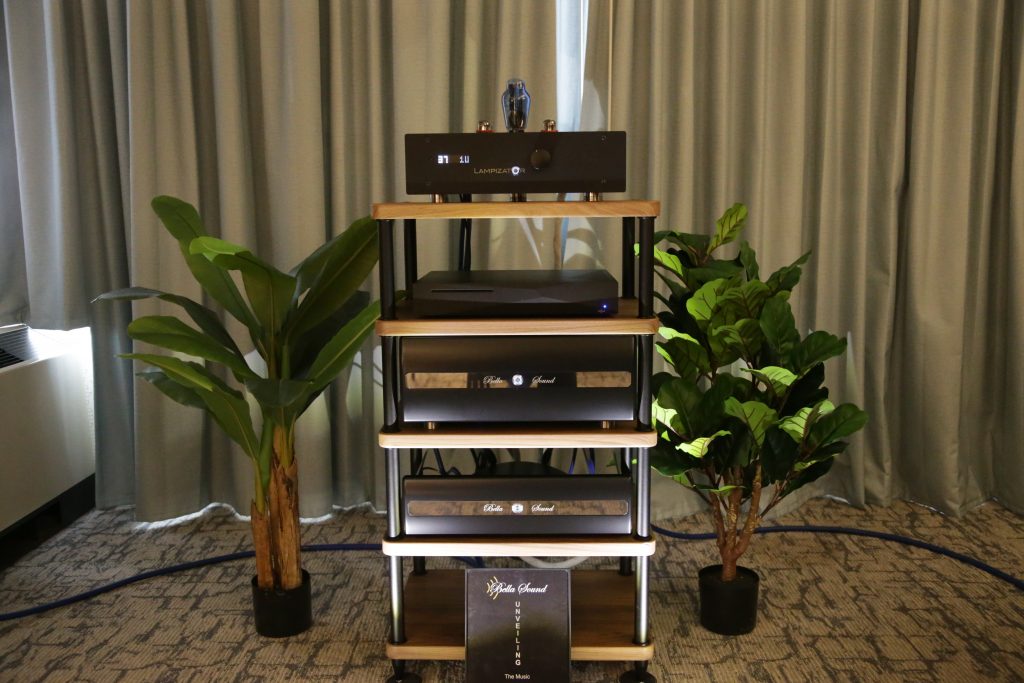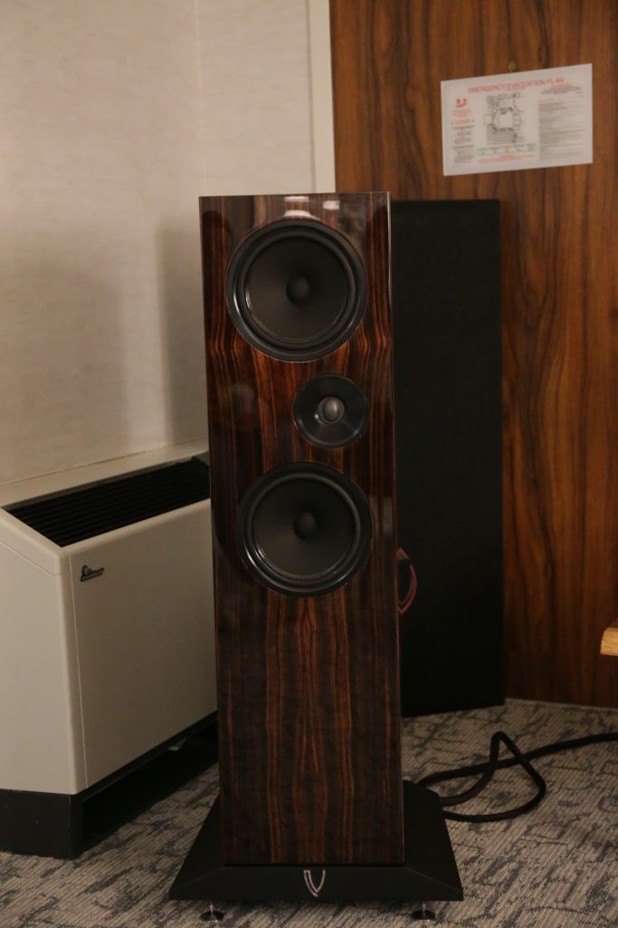 Songer Audio had their full range Field Coil speaker paired with their A3 integrated amplifier and a Lampizator DAC. The room sounded great, and I am not usually a fan of full range speakers, but like anything, implementation makes all the difference. The Songer amp and Speakers had impeccable midrange clarity. The top and low-end were excellent, though I do prefer more punch in the bass, but you can always add a sub if you’re like me. Most of the music you hear lives in the midrange, so having that lush, full, and detailed midrange really sells the speakers.