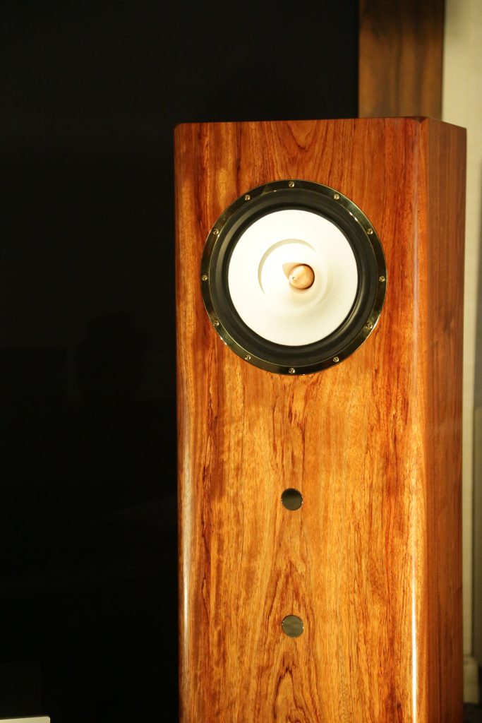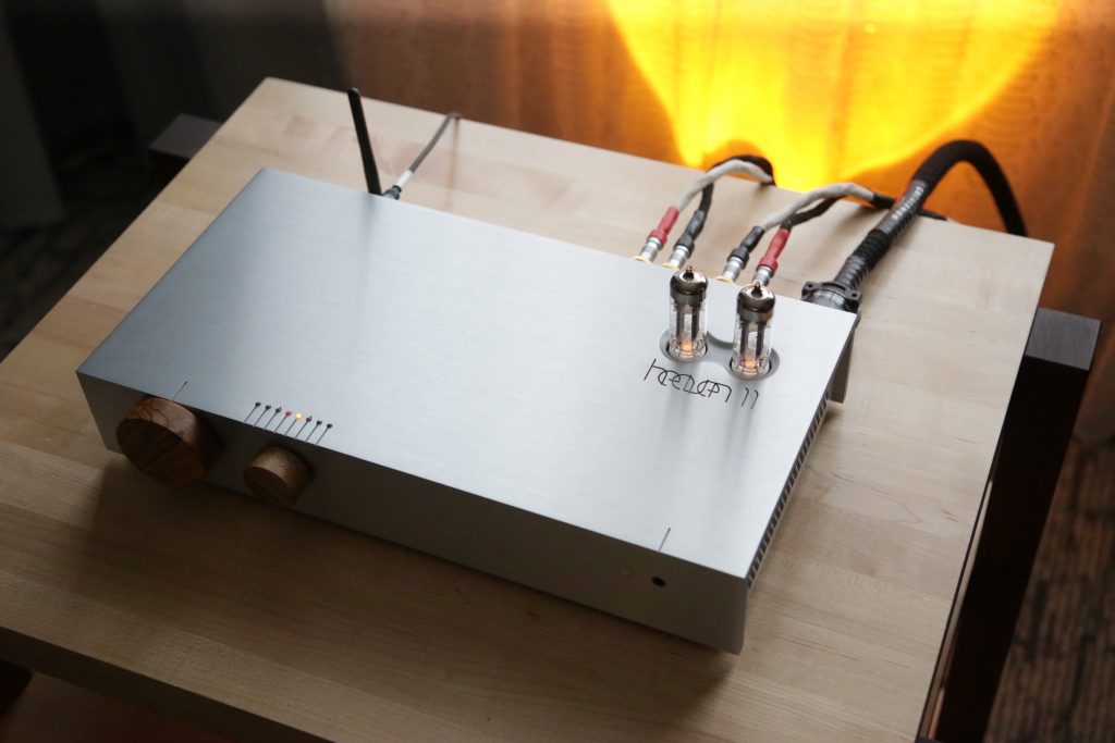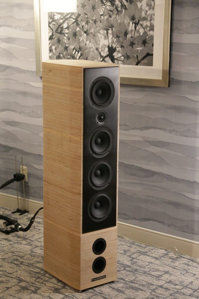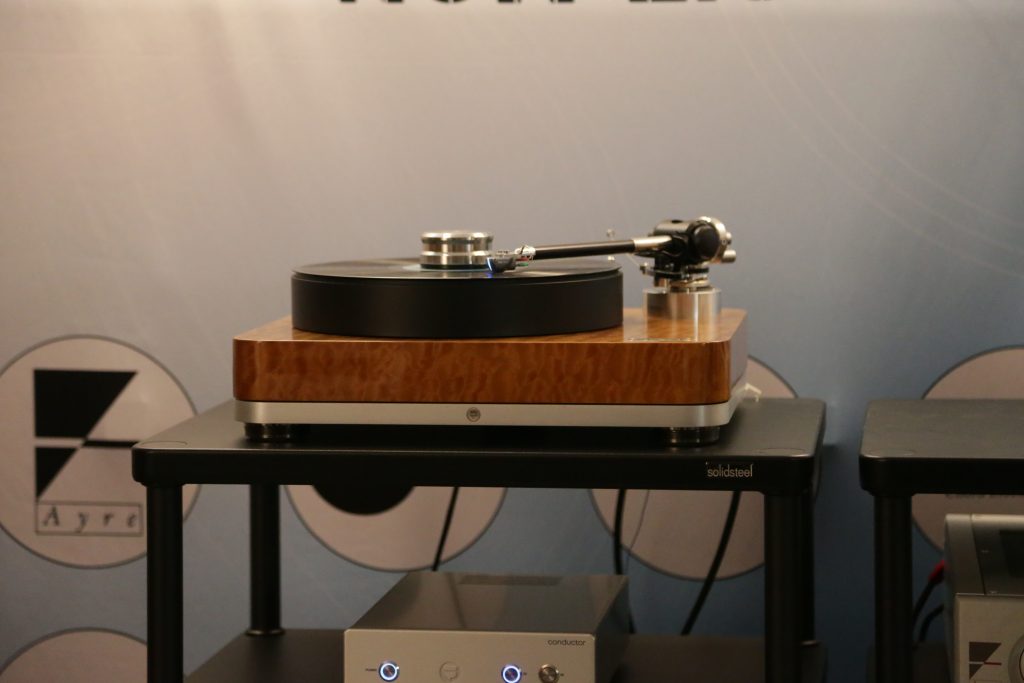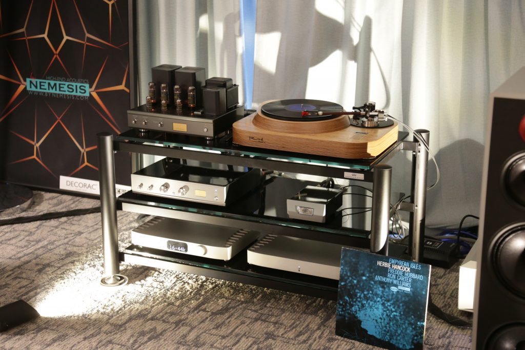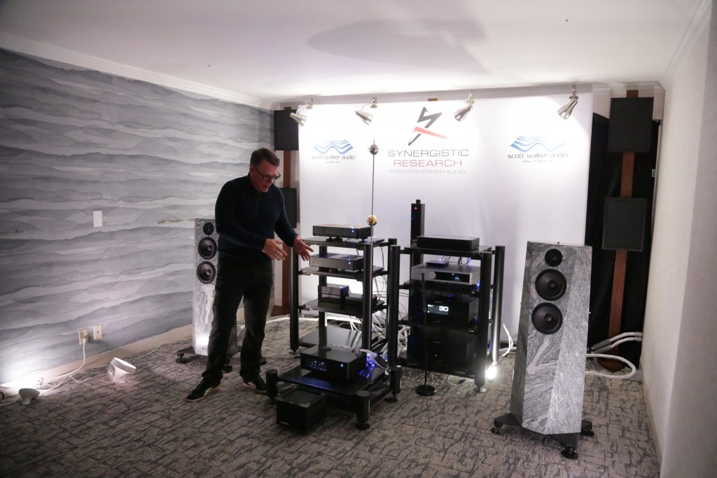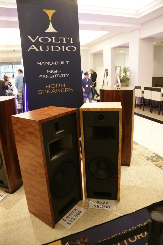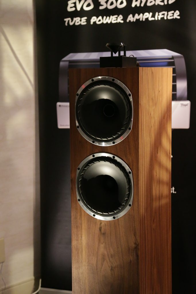Songer Audio had their full range Field Coil speaker paired with their A3 integrated amplifier and a Lampizator DAC. The room sounded great, and I am not usually a fan of full range speakers, but like anything, implementation makes all the difference. The Songer amp and Speakers had impeccable midrange clarity. The top and low-end were excellent, though I do prefer more punch in the bass, but you can always add a sub if you’re like me. Most of the music you hear lives in the midrange, so having that lush, full, and detailed midrange really sells the speakers.