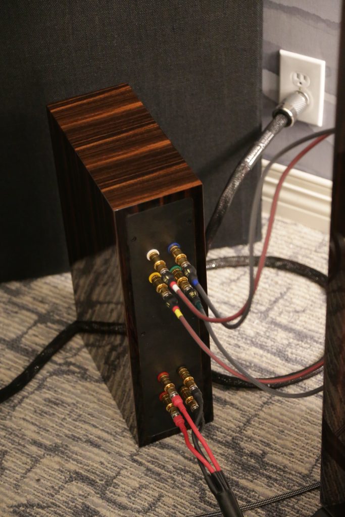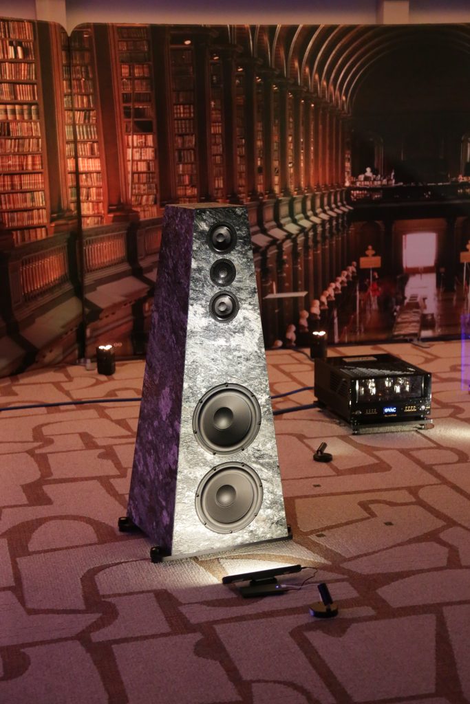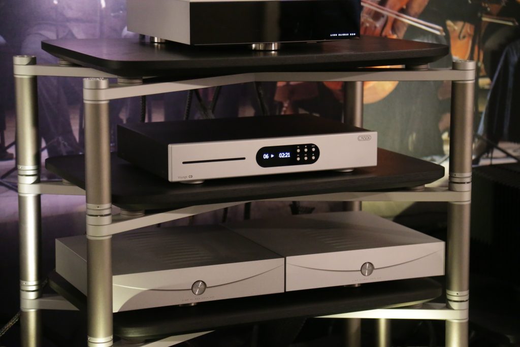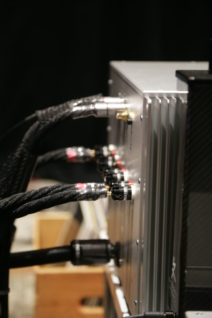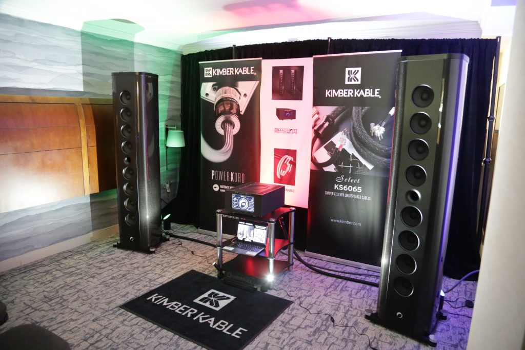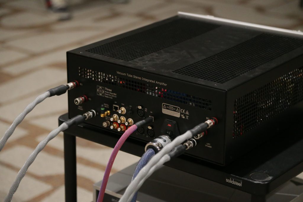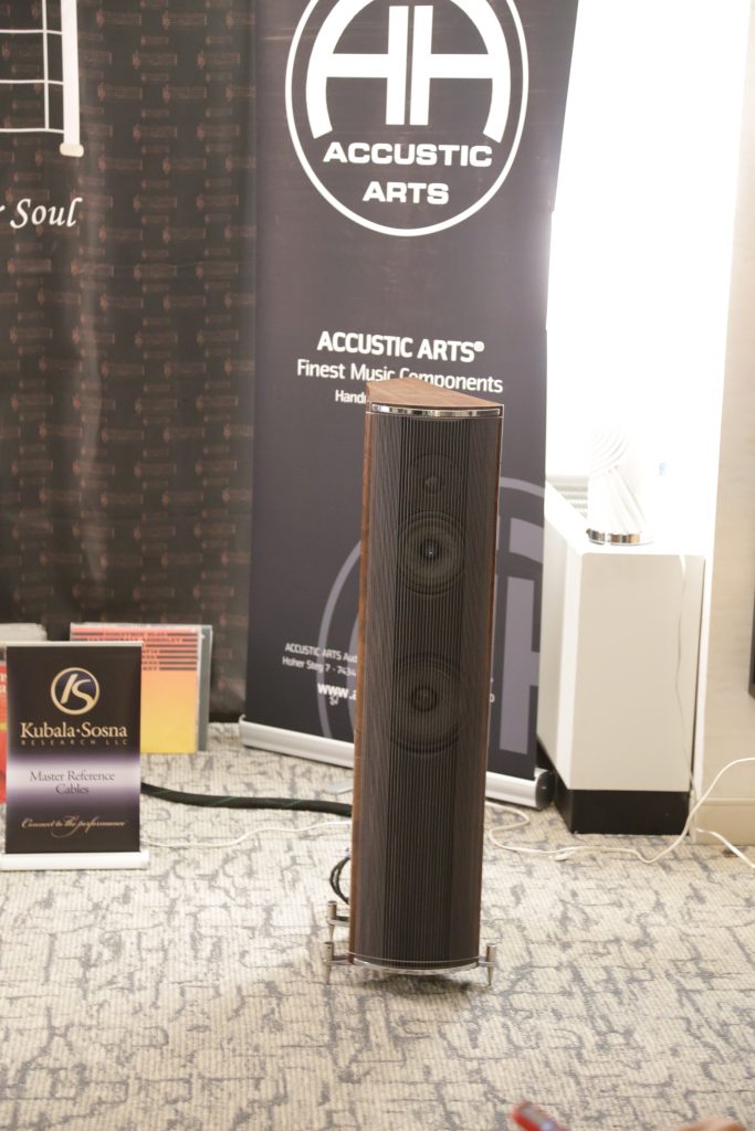 Oz had two rooms at CAF this year, one being a full Thrax System, including the speakers, and the other room he partnered with United Home Audio and had Viva powering a pair of Stenheim Alumine 5 SEs. The Thrax room was a cool experience, as well as being a new one for me. I had not heard their speakers before, and when paired with their electronics, the room was filled with sound. The Lyra Speakers are actually a 2-way bookshelf speaker, though seen at the show on their optional basses, which are not just stands but also house a side-firing subwoofer, making them into a 3-way system. They look small, but the sound is anything but. The system had great detail and body. I listened to the 1812 Overture, and it may be the last time OZ lets me, as I had picked the version with real cannons. The accuracy of the system was astounding, and you know the synergy is perfect when everything is from the same brand. Wireing was Albedo Silver, which is the only cable using monocrystalline silver. They are actually jewelers who make cables, so the finishing and quality are top-notch. Power was handled by S.I.N. Audio.