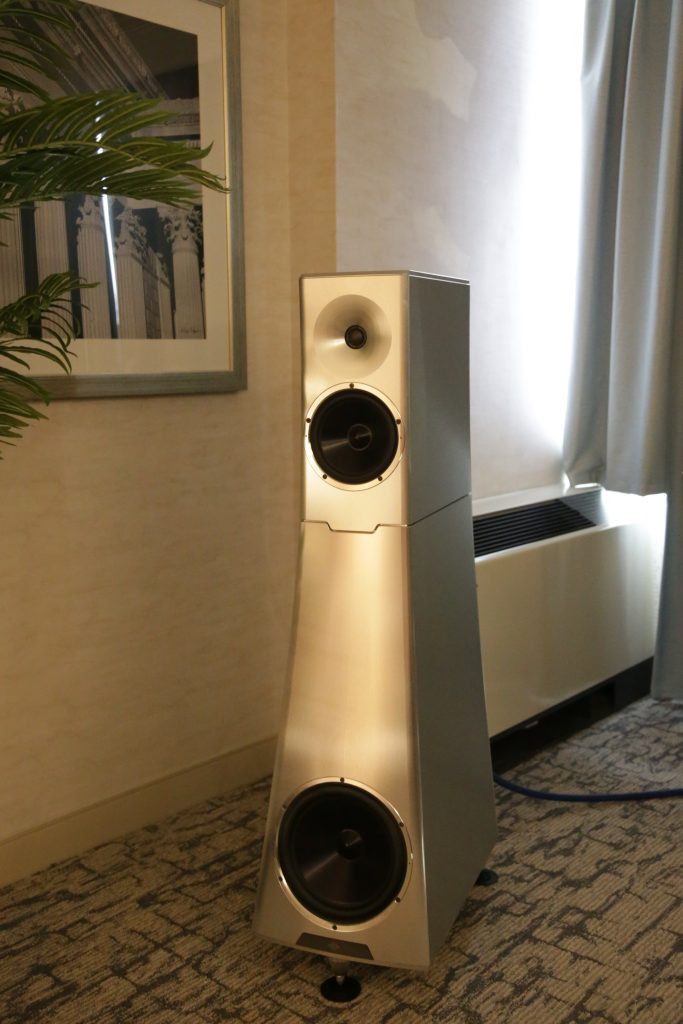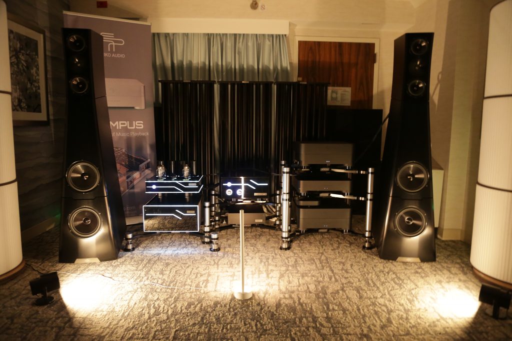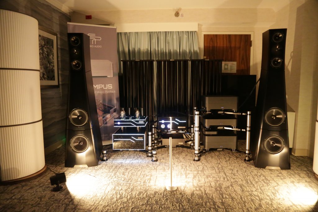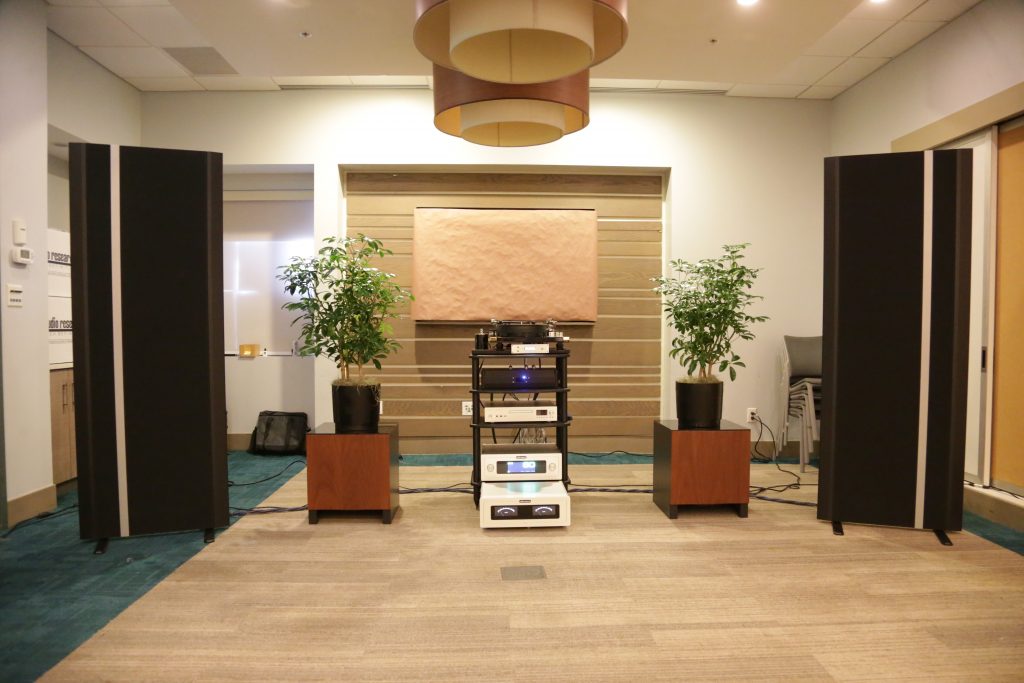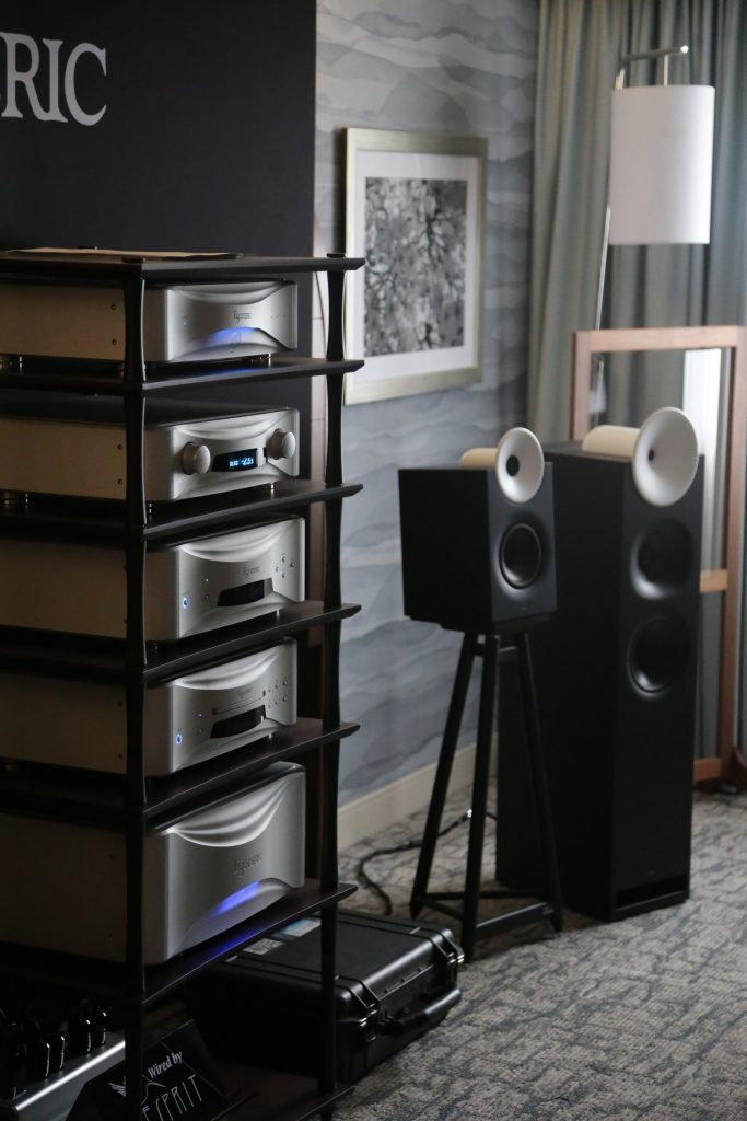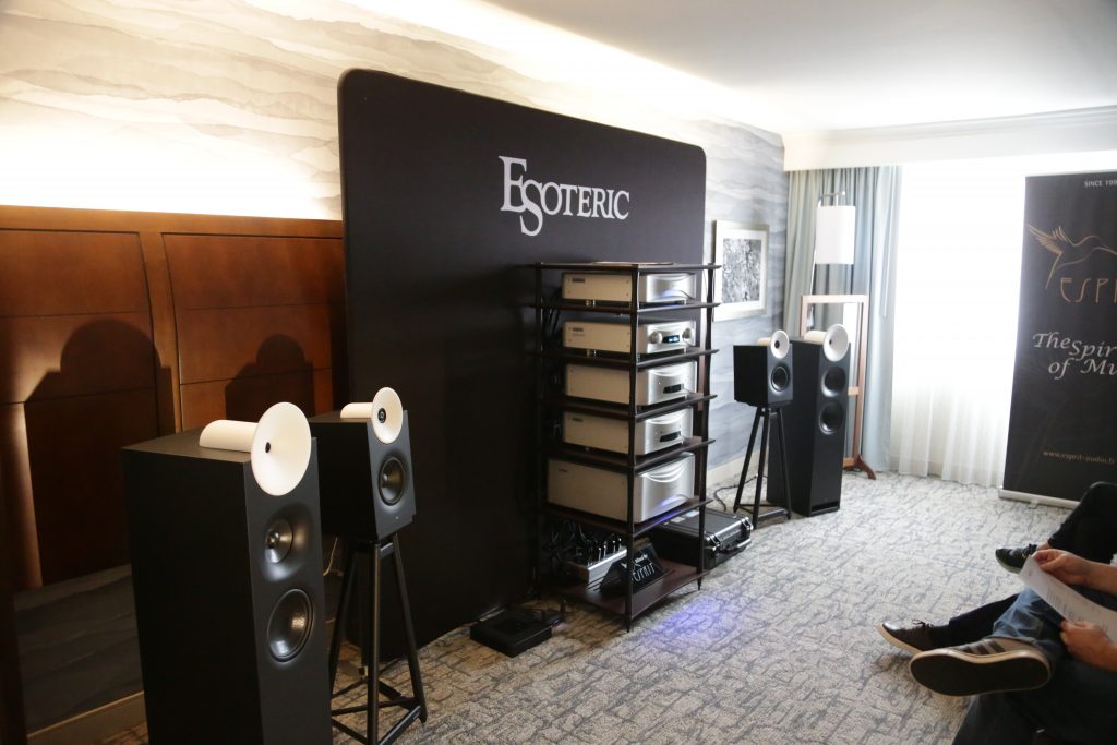 Dreamscapes set up a few rooms, and one of them was certainly special. They had an entire stack of Esoteric gear and Aretai speakers. Aretai makes really cool horn speakers with conventional mid and bass drivers that give a really awesome top end without being too bright and fatiquing. The midrange and bass round off and fortify the sound. They have a fairly wide sweet spot and sound better than many speakers off-axis. They would make for a really good double-duty speaker in a Hifi/theater application, as everyone in the room will get good sound. The Esoteric stack included the U.S. debut of the Grandioso N1 Streamer as well as Grandioso K1X SE SACD Player, Grandioso G1X Master Clock Generator, Grandioso C1X Solo Preamplifier, and Grandioso S1X Stereo Amplifier. I thought it was one of the better rooms and would like to spend more time with Aertai speakers to get a true sense of how well they can perform.