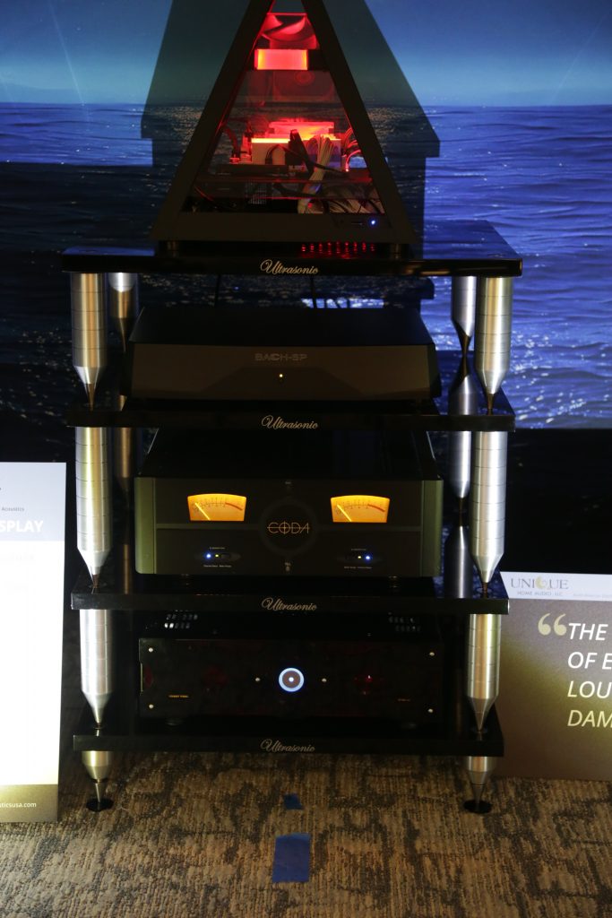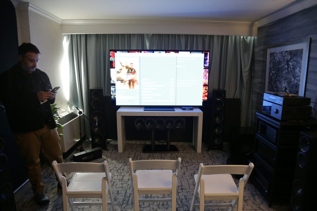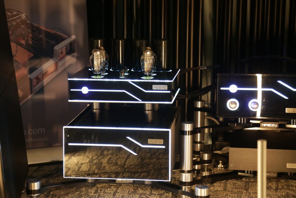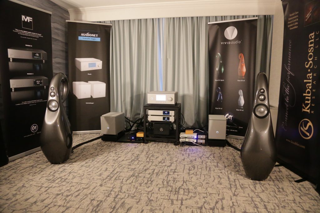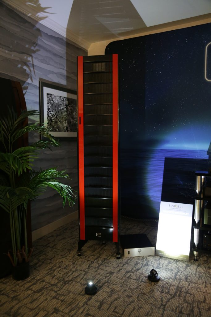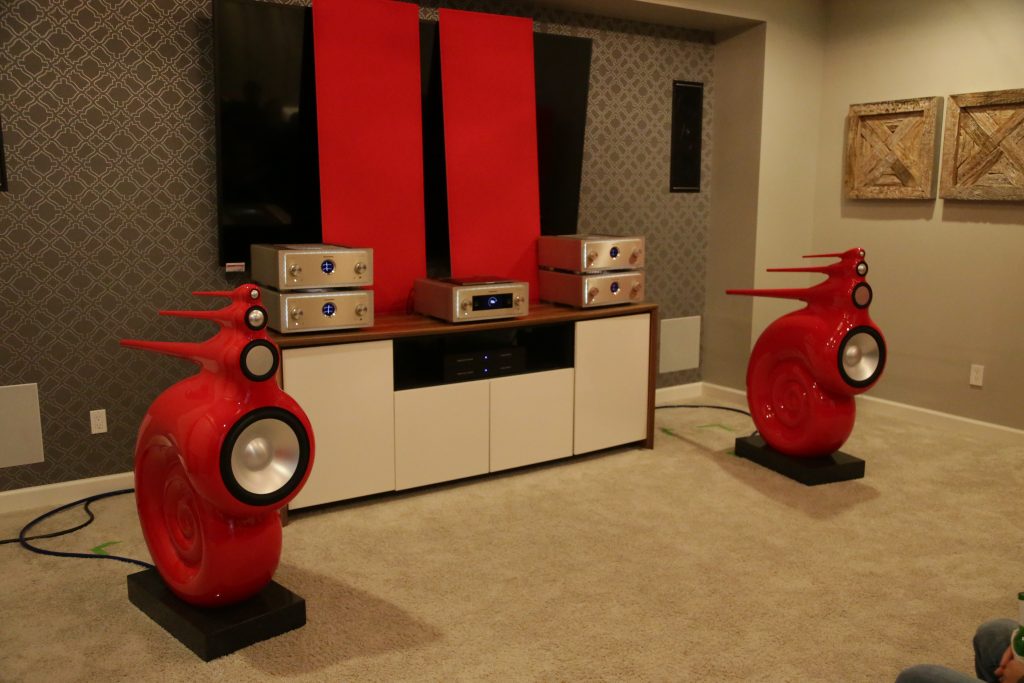 Dreamscapes set up a few rooms, and one of them was certainly special. They had an entire stack of Esoteric gear and Aretai speakers. Aretai makes really cool horn speakers with conventional mid and bass drivers that give a really awesome top end without being too bright and fatiquing. The midrange and bass round off and fortify the sound. They have a fairly wide sweet spot and sound better than many speakers off-axis. They would make for a really good double-duty speaker in a Hifi/theater application, as everyone in the room will get good sound. The Esoteric stack included the U.S. debut of the Grandioso N1 Streamer as well as Grandioso K1X SE SACD Player, Grandioso G1X Master Clock Generator, Grandioso C1X Solo Preamplifier, and Grandioso S1X Stereo Amplifier. I thought it was one of the better rooms and would like to spend more time with Aertai speakers to get a true sense of how well they can perform.