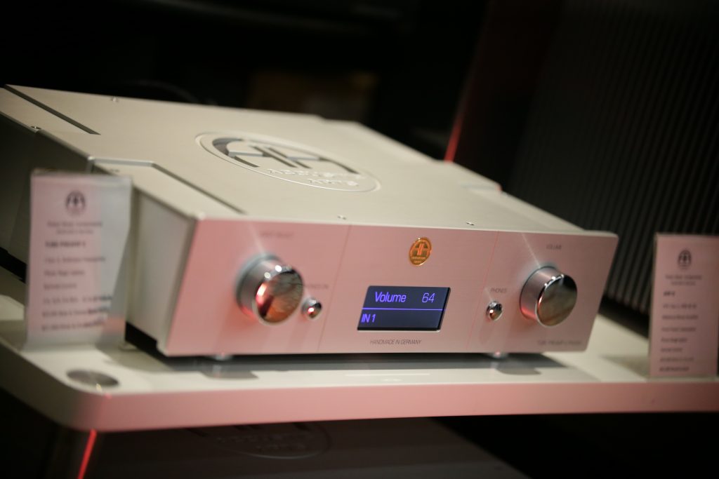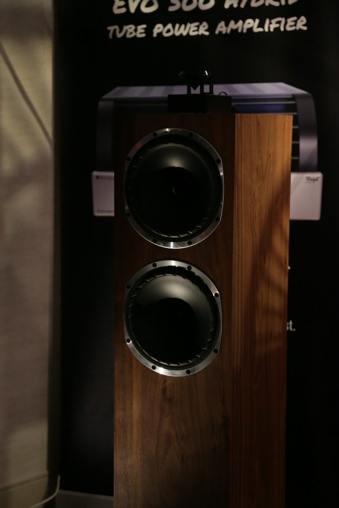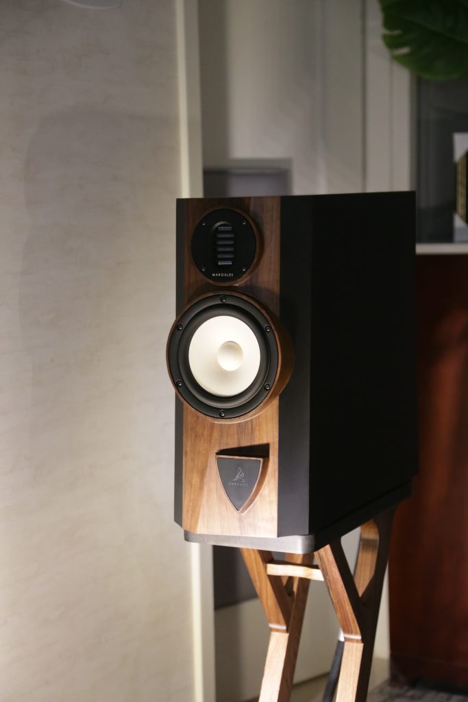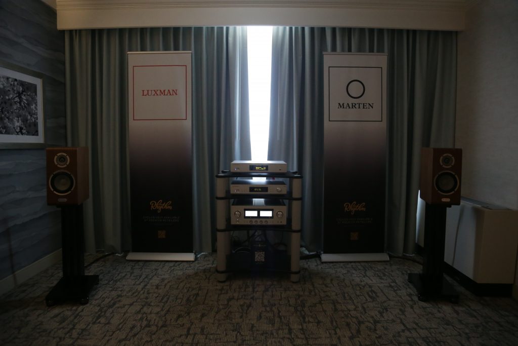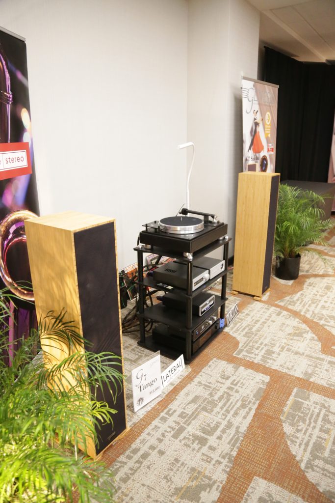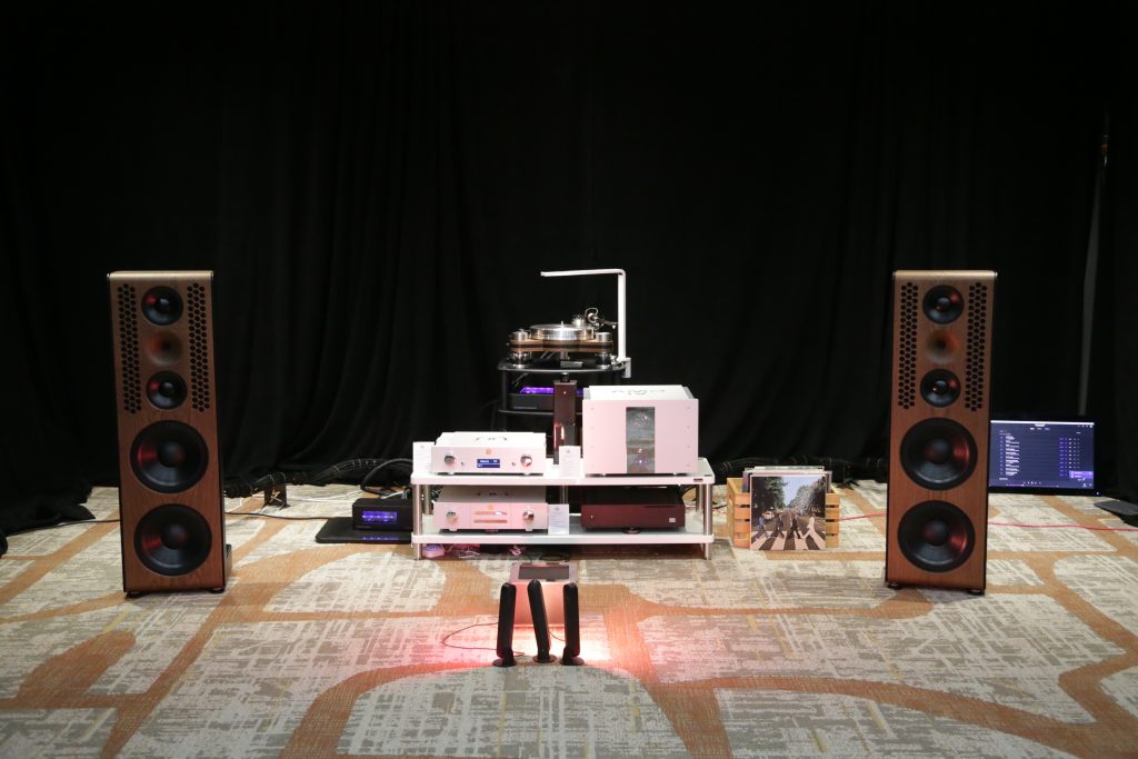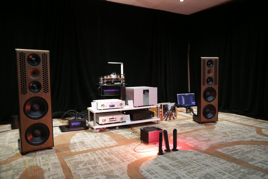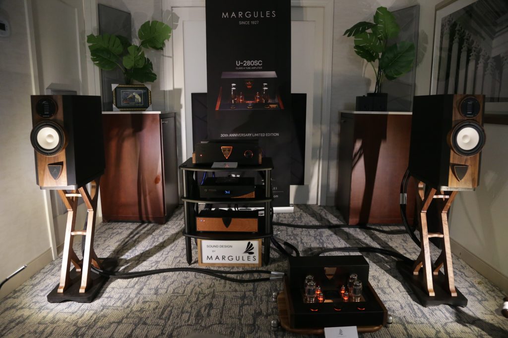 Maugules is not a company I was overly familiar with, and I really have not spent a lot of time with. That changed this year. When we visited their room, they had a full system using all their own products. This is the first time I can recall seeing and hearing their speakers in person. They brought the Orpheo Century Overtura and powered the speakers with their U-280SC tube amplifier. The system was not only stunning to look at, but stunning to listen to. The earthy, rich mids and airy top end blended perfectly together, creating a smooth, articulate sound. I played a few tracks I knew to get a feel, and what really stood out was how well they handle vocals. They were not super bassy, but they are bookshelves; however, the lower end was still nice and present. Their design language is gorgeous, too; the stands and the speakers are cohesive, as well as their amps and other electronics share the same language, meaning you can outfit a whole system that will be as aesthetically pleasing as it is sonically pleasing.