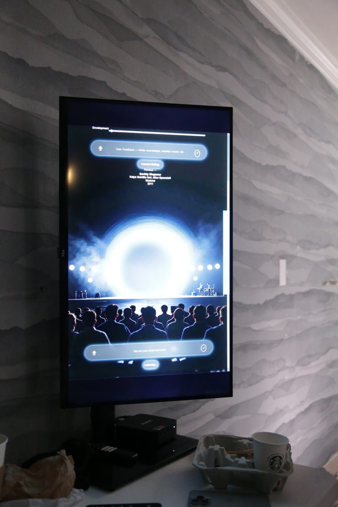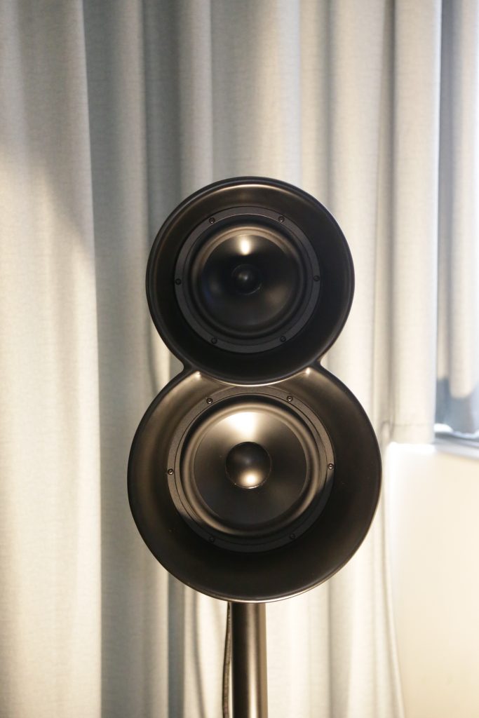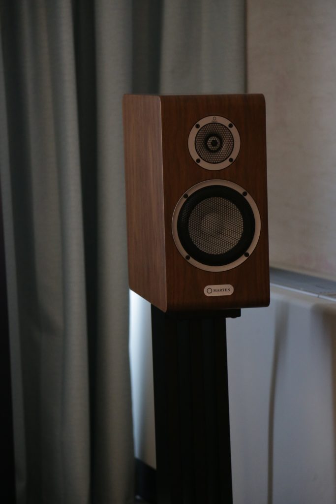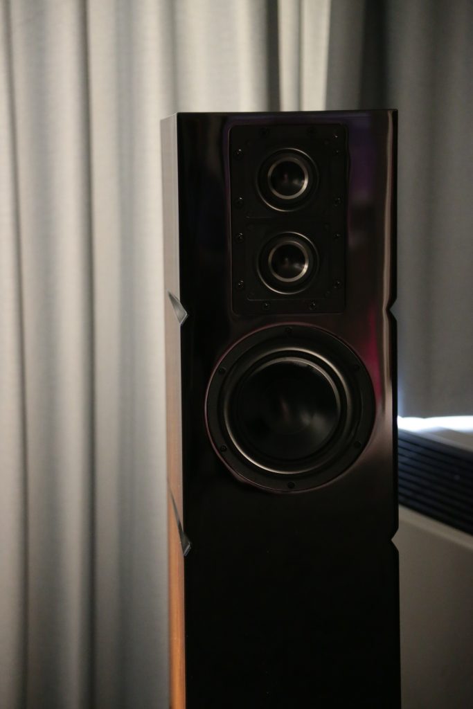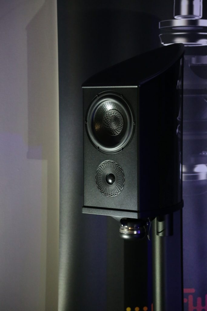 The smaller system also used a Wand Turntable, as well as a Wand arm and 2M Black cartridge. The electronics were made up of the HEED Elixer line and the G7 Tango speakers. I played Ethel Cain’s Thuoughfare on the turntable and it sounded wonderful. The vocals were lifelike, and the instrumentals had detail, space, and texture. When it got to the guitar solo at the end, the system sounded huge, the depth and width of the sound stage was beyond what you would expect given the size of the speakers. The Heed electronics and Wand setup provided a clean, detailed signal that let the speakers really shine.
