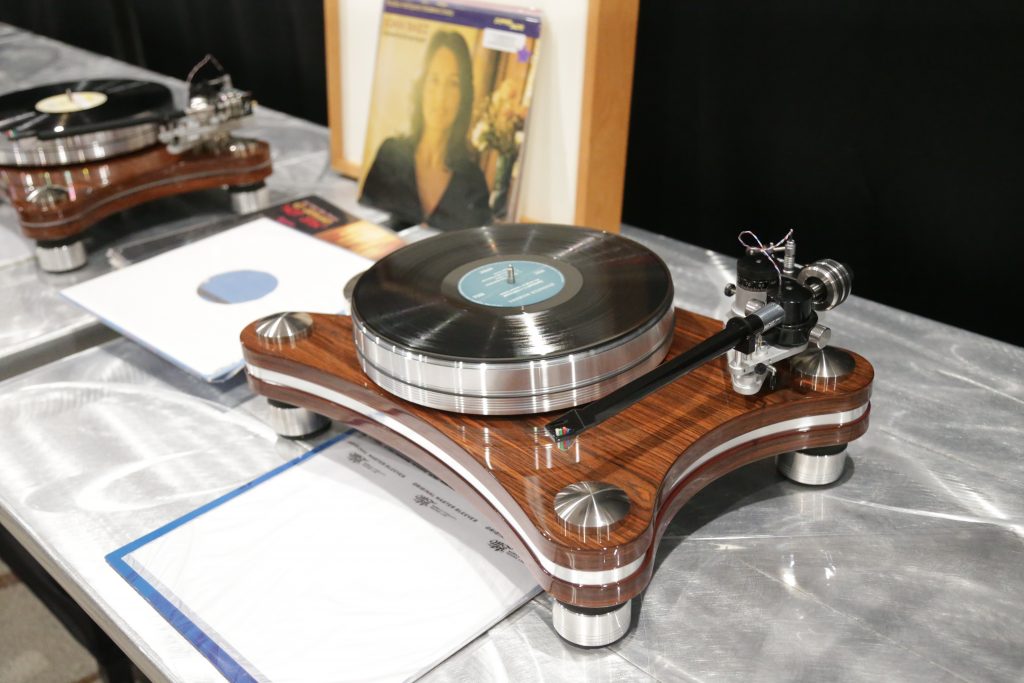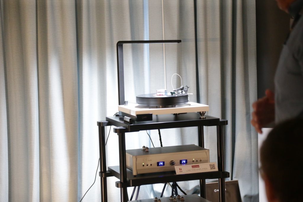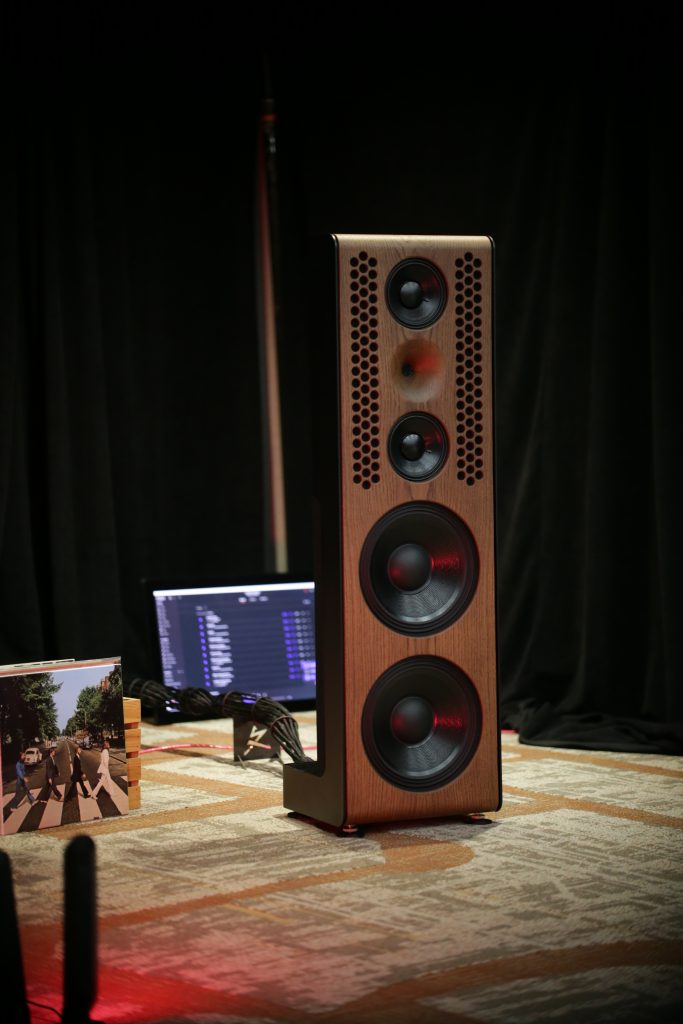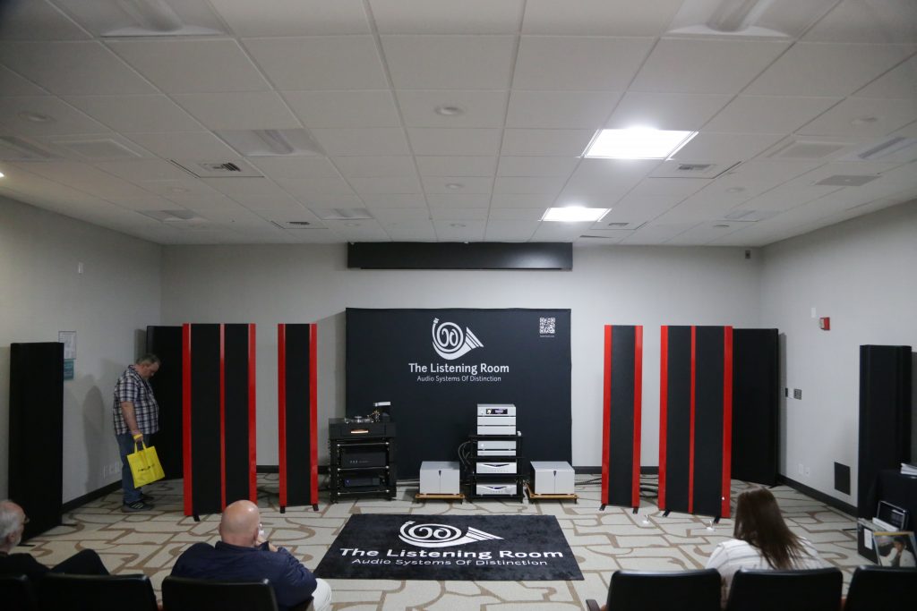 Mike at the Listening Room also usually brings an impressive setup or 5 to Capital Audiofest, this year, though, he really outdid himself. This year, he booked a huge room and filled it with some top-tier gear. Including Magnepan’s massive 30.7x speakers, a full Audiaflight front end, and the crown jewel, the Wilson Benesch GMT One System. When I say this thing is a beast, I mean it; the full system weighs in at 523 pounds. It is loaded with tech to get the absolute most out of your vinyl. The tonearm is made from SLS (Selective Laser Sintering) a type of 3D printing, and carbon fiber, which is not a simple task, especially to make it as artistically as this is. The whole system had synergy, creating an enveloping sound that is hard to describe. Another surprise was the bass from the Maggies, which have a bit of a reputation for not being bassy, but Mike put on some techno, and they slammed. The Audiaflight amps provided more than enough current to keep them singing.