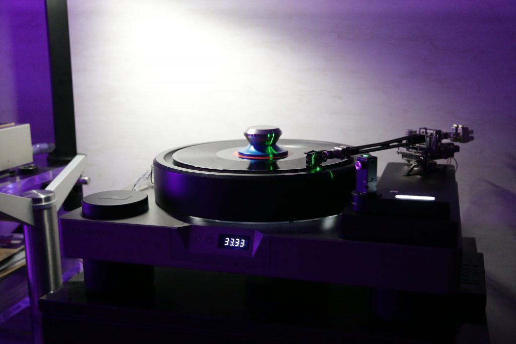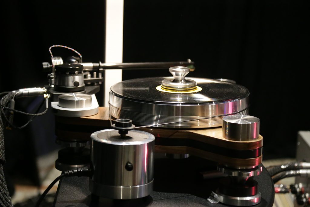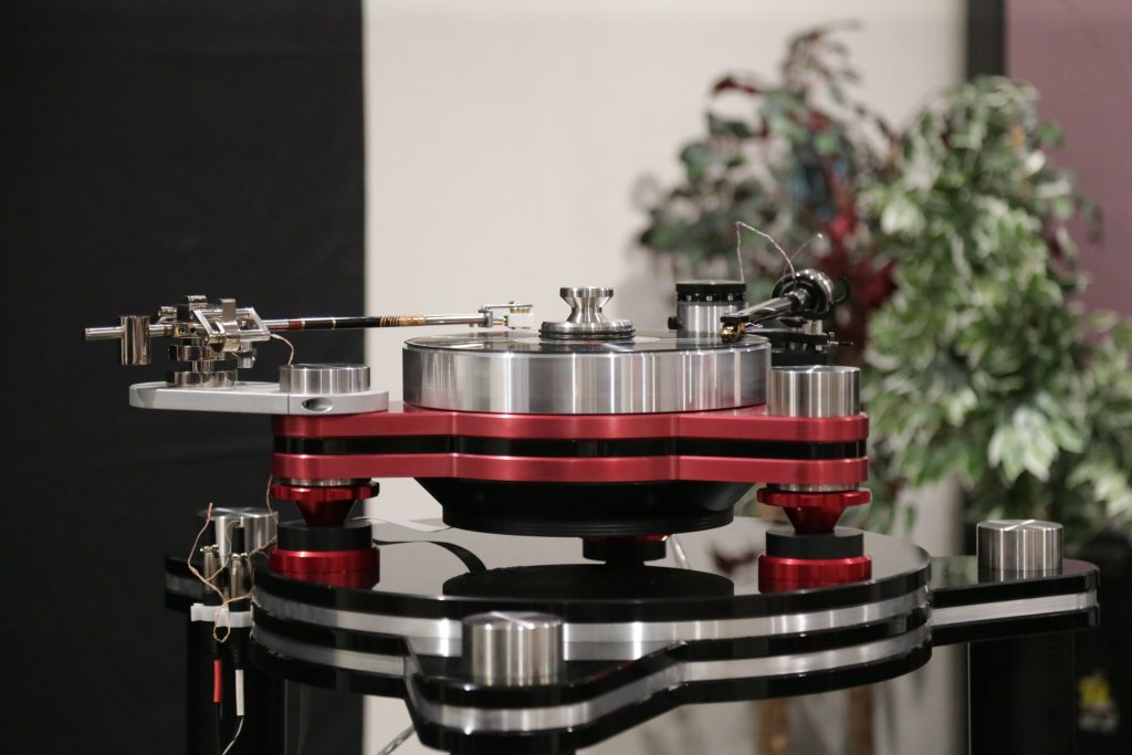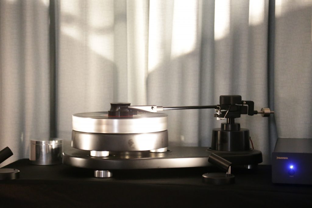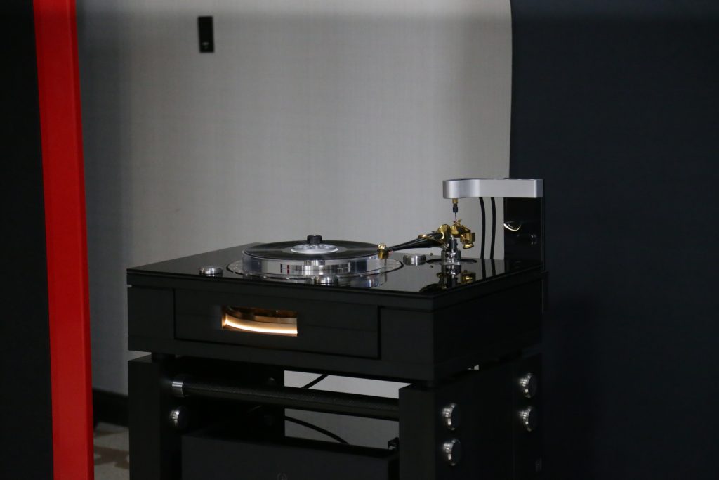 Mike at the Listening Room also usually brings an impressive setup or 5 to Capital Audiofest, this year, though, he really outdid himself. This year, he booked a huge room and filled it with some top-tier gear. Including Magnepan’s massive 30.7x speakers, a full Audiaflight front end, and the crown jewel, the Wilson Benesch GMT One System. When I say this thing is a beast, I mean it; the full system weighs in at 523 pounds. It is loaded with tech to get the absolute most out of your vinyl. The tonearm is made from SLS (Selective Laser Sintering) a type of 3D printing, and carbon fiber, which is not a simple task, especially to make it as artistically as this is. The whole system had synergy, creating an enveloping sound that is hard to describe. Another surprise was the bass from the Maggies, which have a bit of a reputation for not being bassy, but Mike put on some techno, and they slammed. The Audiaflight amps provided more than enough current to keep them singing.