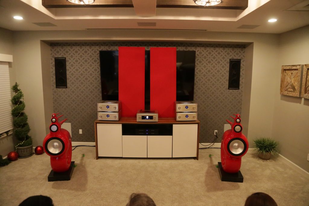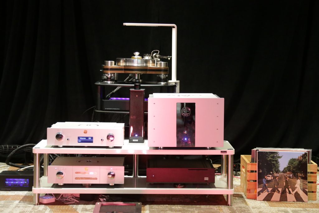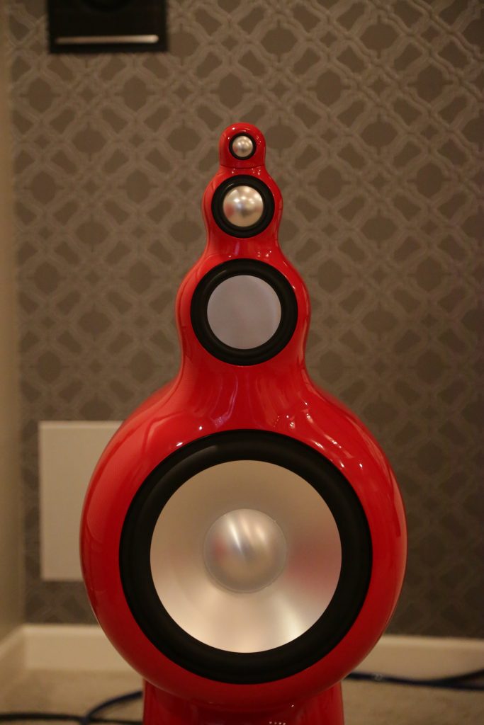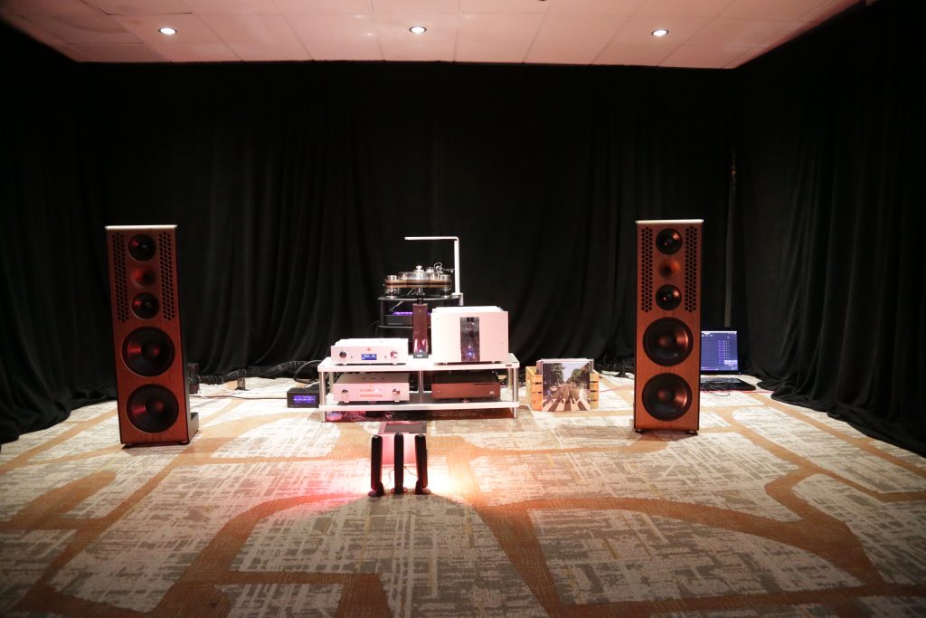 Another Room using YG was Burmester; they had a pair of Summits from the Peaks line powered by their 232 Integrated amplifier, painted in a gorgeous Porsche metallic red. The Burmester powered the Summits very well. The sound was very clean and articulate. The tone was super neutral, offering very accurate sound reproduction.