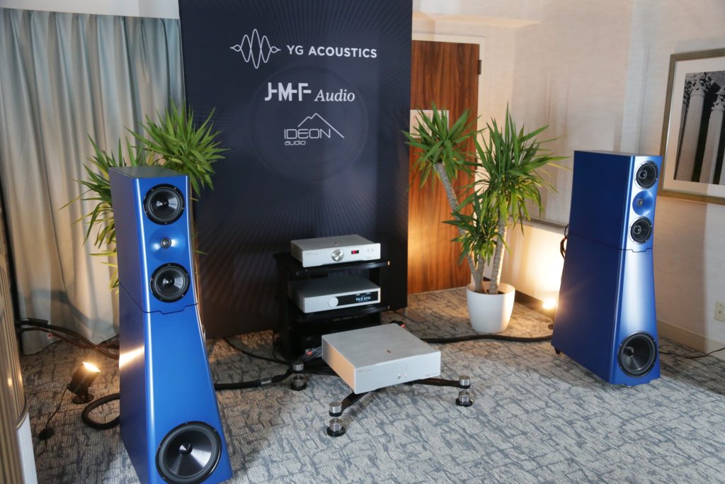 YG had a few rooms with their speakers being used, as well as two of their own rooms. In the first of the rooms, they had the Sonja 3.2 in a gorgeous Blue paired with JMF and Ideon electronics. This was actually my favorite of the YG setups. It was fairly simple but well executed. The sound was impressive to say the least, a wide open sound stage, and the speakers disappeared in the room. Their other main room had a pair of Sonja 3.3 paired with Acustica Applicata Alieno electronics, which, admittedly, I had never heard of before this show. The sound was excellent and the best I have heard the Sonja 3.3 sound. The system had good synergy and balance.